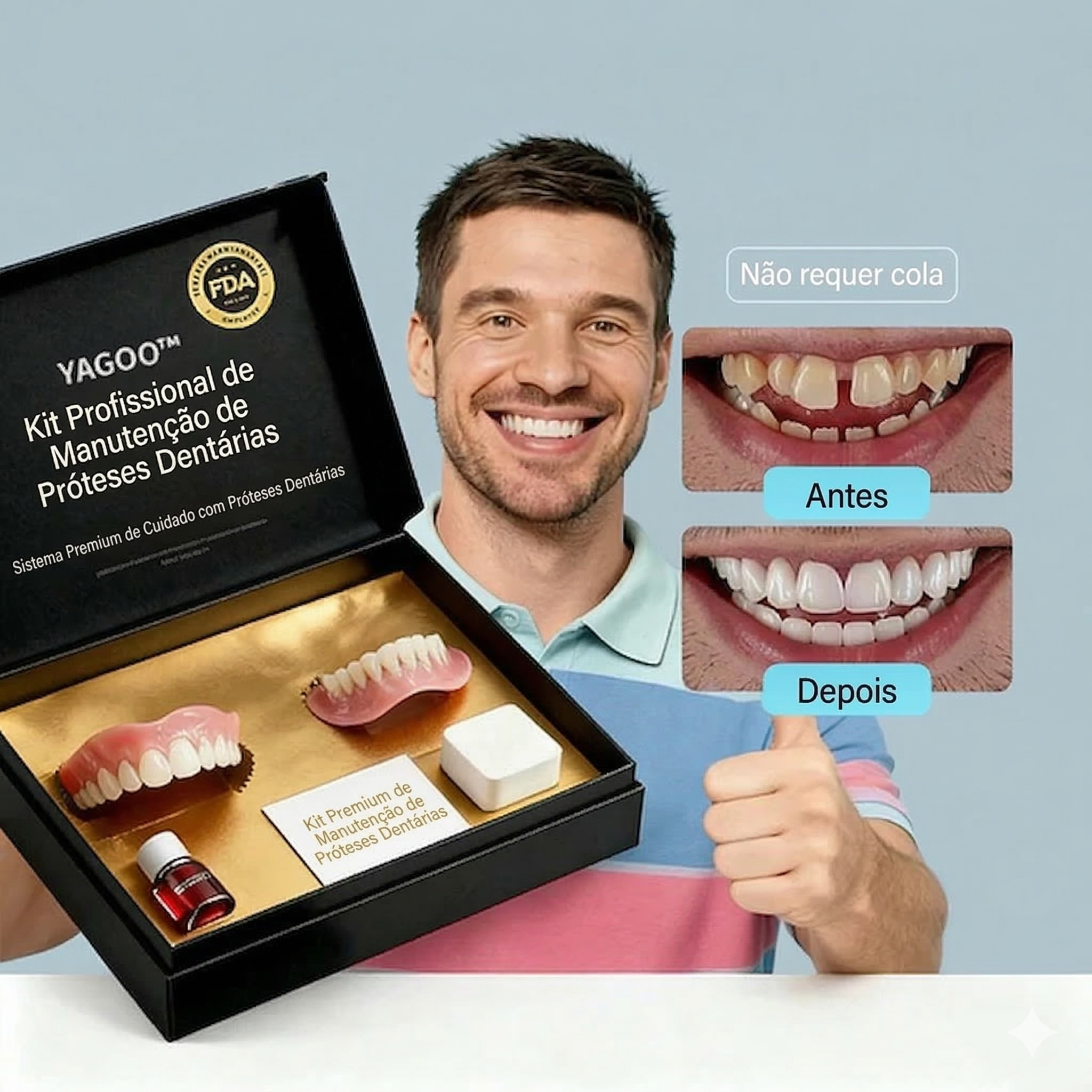 Após a prótese endurecer, você pode reaquecê-la e remodelá-la quantas vezes quiser dentro de um período de 24 horas. Conquistar o sorriso perfeito nunca foi tão fácil.