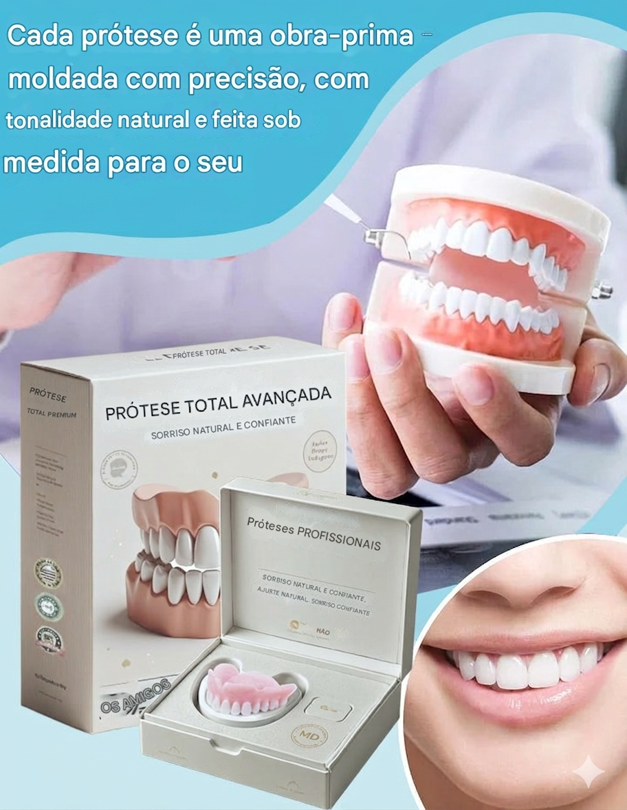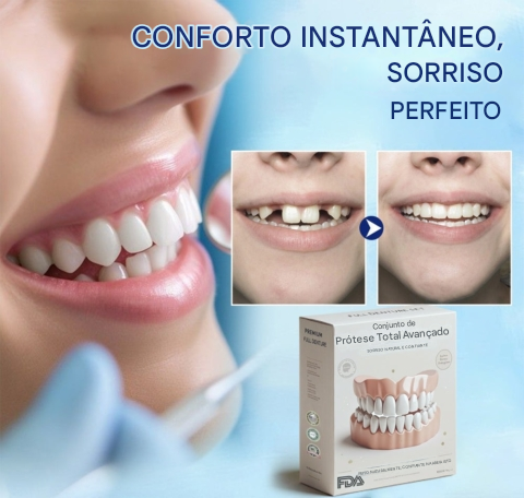 Sorriso Perfeito Instantaneamente: Transforme seu sorriso instantaneamente com o Conjunto de Próteses Dentárias. Experimente a satisfação de obter um encaixe perfeito e personalizado imediatamente. Nosso inovador conjunto de próteses elimina o desconforto de próteses mal ajustadas, oferecendo uma sensação confortável e natural que faz com que suas próteses pareçam uma verdadeira parte da sua boca. Diga adeus a pontos doloridos e irritações, pois o Conjunto de Próteses Dentárias proporciona alívio imediato, permitindo que você desfrute do seu sorriso com uma nova confiança e conforto. Desfrute de uma transição perfeita para uma experiência com próteses mais confortáveis e com melhor encaixe, sem demora.