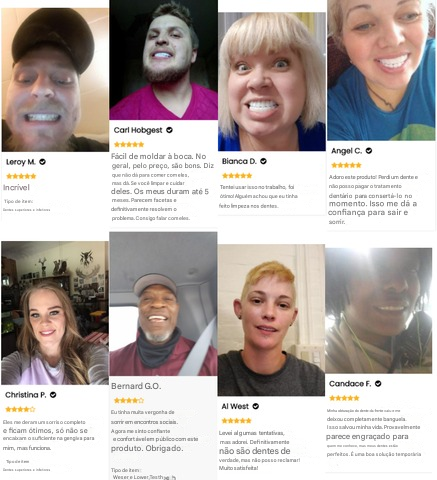 “Perdi todos os meus dentes devido a uma condição hereditária e os implantes dentários não eram uma opção para mim por causa da minha saúde. Decidi experimentar próteses totais com sucção e, sinceramente, fiquei impressionada. Pareciam de alta qualidade, mas eram super acessíveis, então pensei: por que não? Depois de apenas alguns dias, não conseguia acreditar no quão confortáveis e seguras elas eram. Cheguei a encomendar um segundo conjunto porque gostei muito. Elas fizeram uma grande diferença no meu dia a dia — só queria tê-las experimentado antes!” — Elizabeth J. Andes